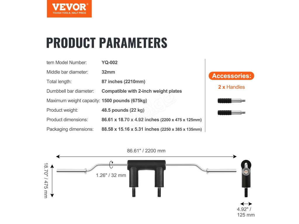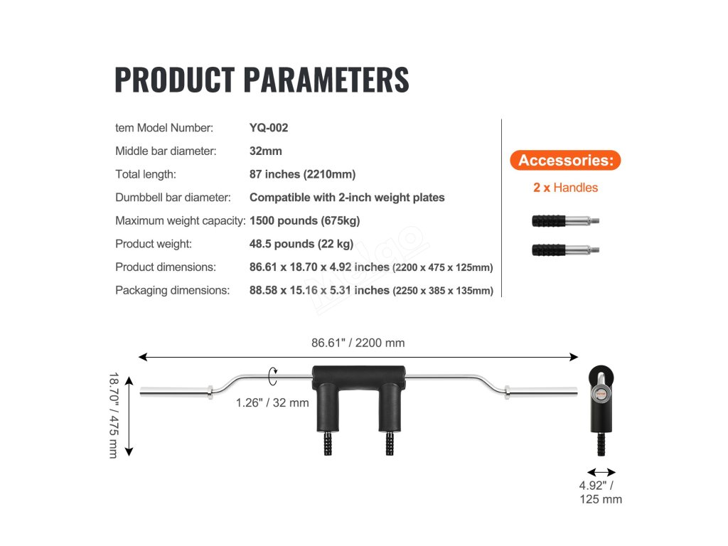 Bezpečnostní dřepová tyč 1,500 LBS, průměr 32mm, s ramenními polštáři