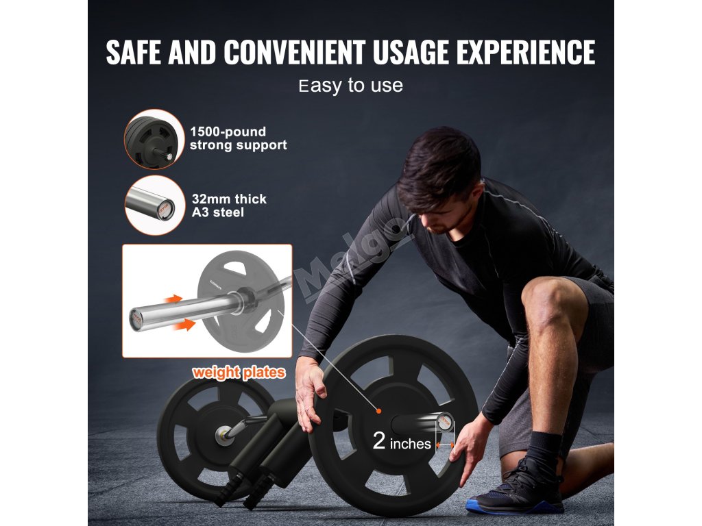 Naše tyč snadno pojme standardní zátěžové desky dostupné na trhu. I začátečníci s ní mohou pracovat bez námahy, což zajišťuje bezpečný a efektivní trénink dřepů.