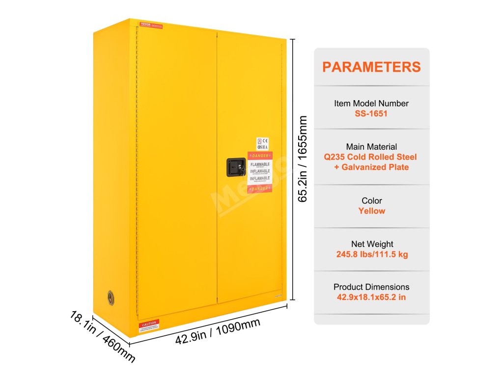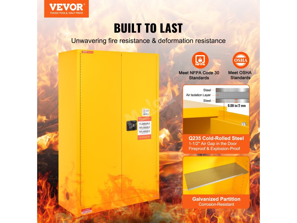 Naše skříň na hořlaviny s velkorysou kapacitou 45 galonů pojme různé hořlavé a hořlavé materiály, jako je alkohol, lepidlo, banánový olej, benzín a další. Budete mít k dispozici prostor, který potřebujete k bezpečnému uložení těchto předmětů.