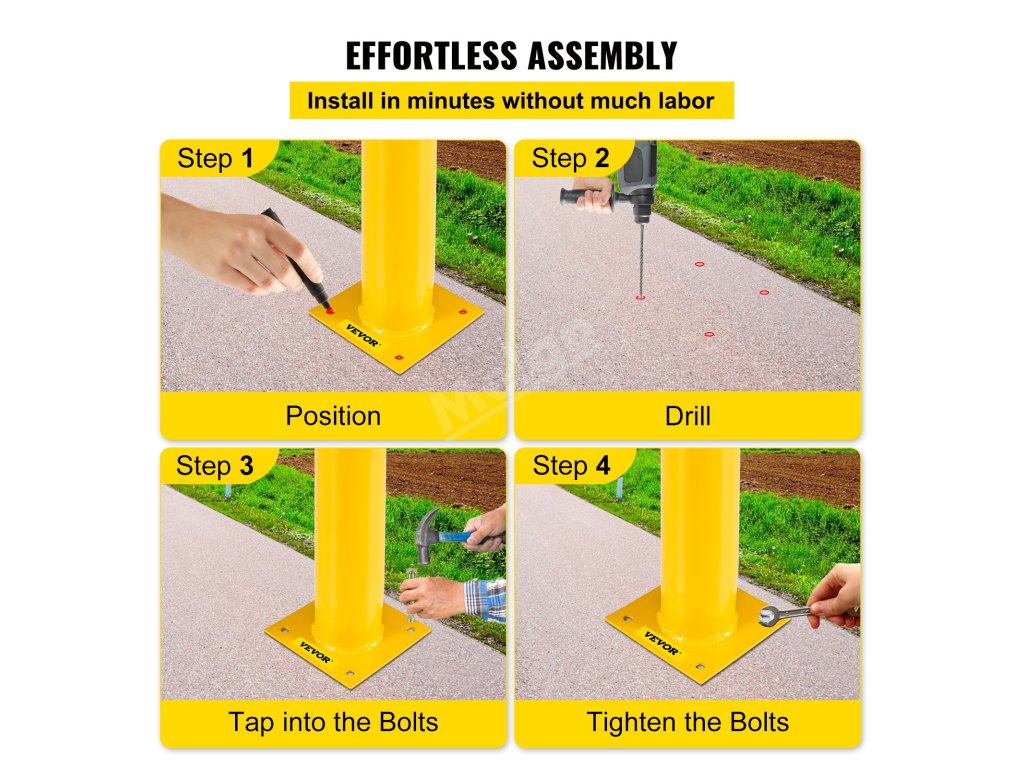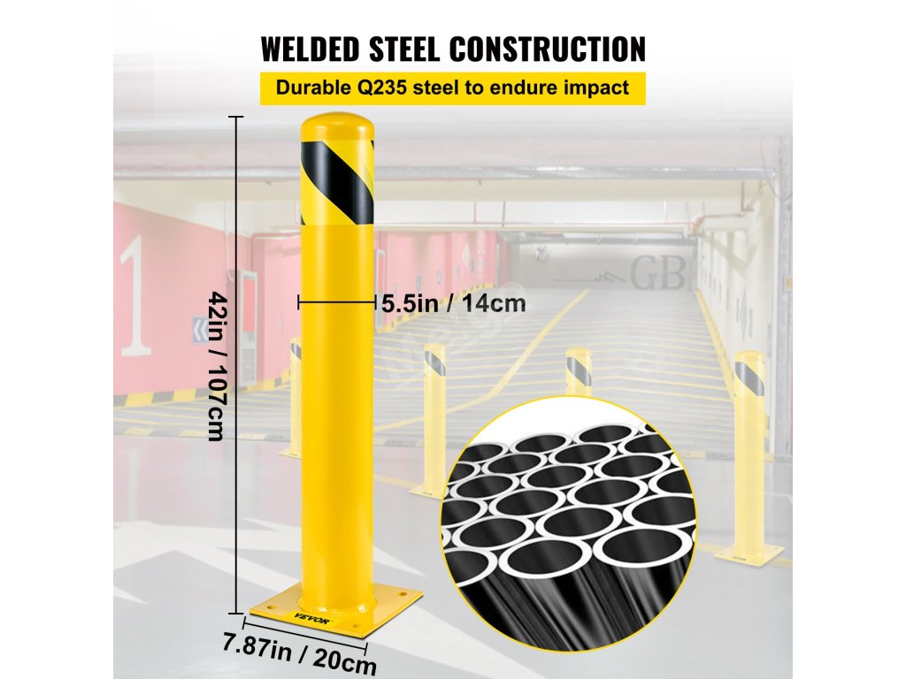 Bezpečnostní sloupek s výškou 42" a hloubkou 5,5" a tloušťkou trubky 0,12" může sloužit jako ideální pomocník, takže se nemusíte obávat poškození v důsledku náhlého nárazu vozidla apod.