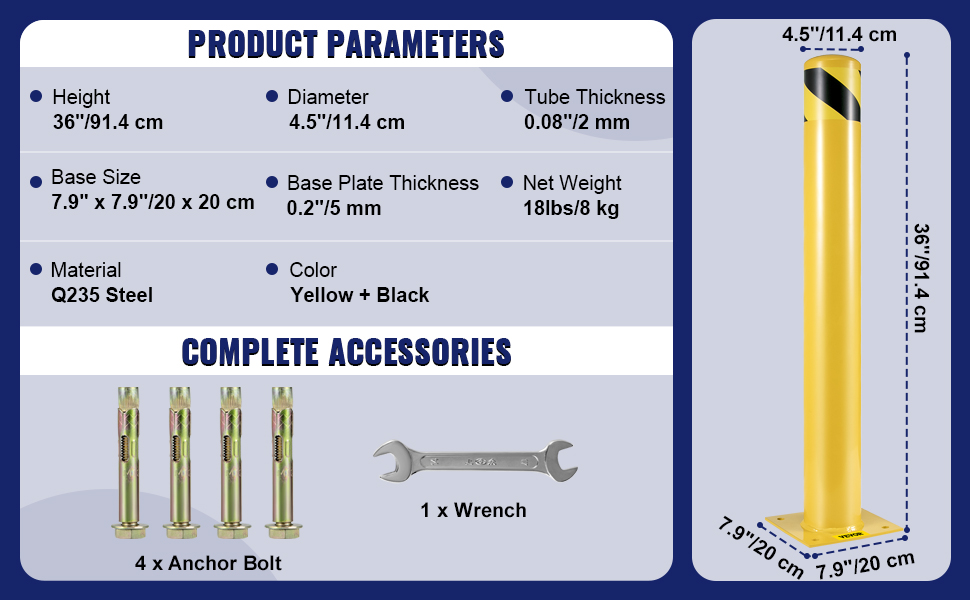 Přemýšlíte, který sloupek bude vyhovovat vašim potřebám? Sloupky VEVOR mají řadu využití v různých prostředích, od řešení nepříjemných problémů na parkovištích až po zlepšení ochrany majetku. Bezpečnostní žlutá barva upoutá pozornost řidičů v prostředí se slabým osvětlením, takže se vám nestane, že byste se stali účastníky dopravní nehody se zraněním. Jejich umístění u vjezdů, parkovišť, chodníků, cyklostezek nebo v dílně je dobrý nápad. Vyberte si patník od společnosti VEVOR!