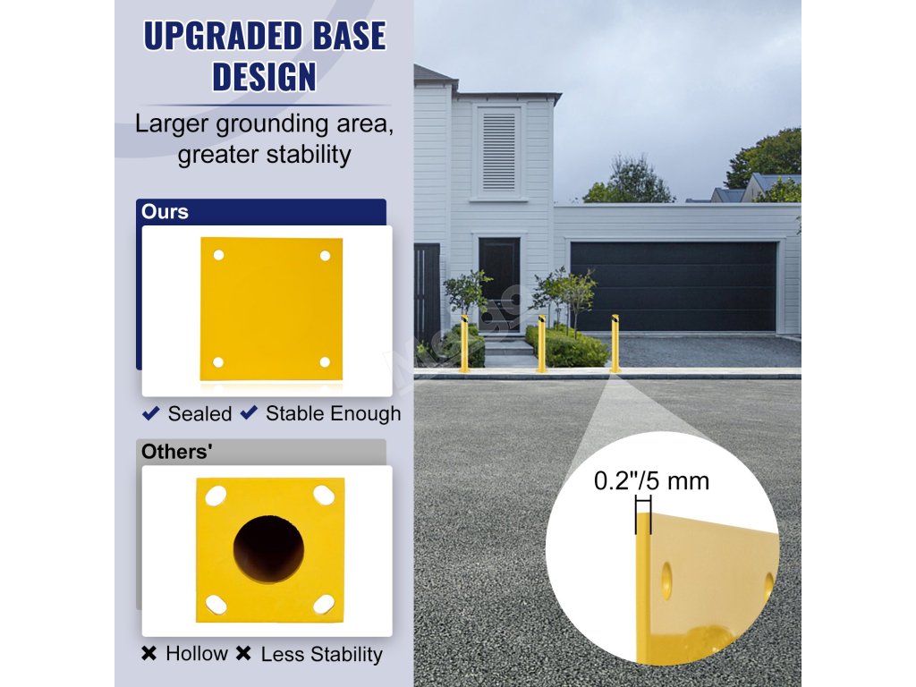 Přemýšlíte, který sloupek bude vyhovovat vašim potřebám? Sloupky VEVOR mají řadu využití v různých prostředích, od řešení nepříjemných problémů na parkovištích až po zlepšení ochrany majetku. Bezpečnostní žlutá barva upoutá pozornost řidičů v prostředí se slabým osvětlením, takže se vám nestane, že byste se stali účastníky dopravní nehody se zraněním. Jejich umístění u vjezdů, parkovišť, chodníků, cyklostezek nebo v dílně je dobrý nápad. Vyberte si patník od společnosti VEVOR!
