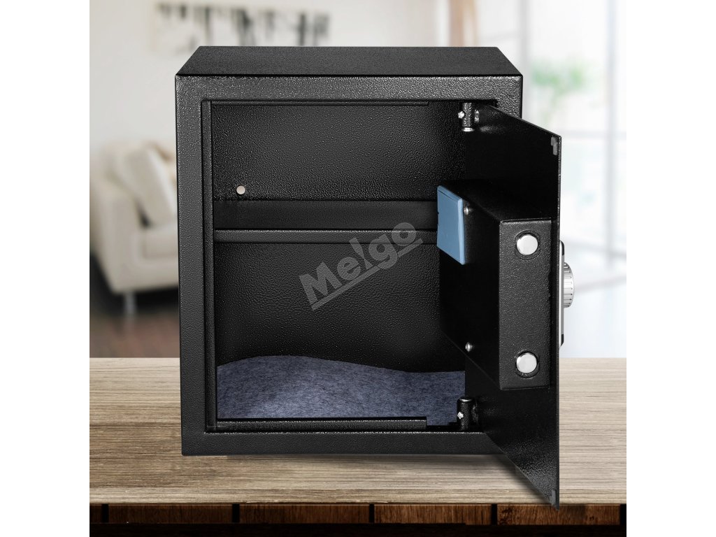 Trezor na peníze má 3 mm silné dveře, 4 systémy zámků a skryté panty odolné proti vloupání, které zabraňují krádeži vašich věcí.