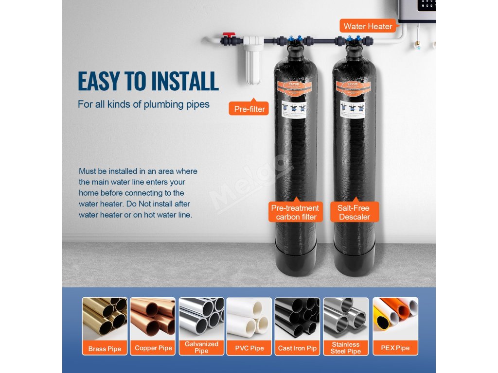 Vychutnajte si čistú vodu v celom dome s odstraňovačom vodného kameňa VEVOR bez soli