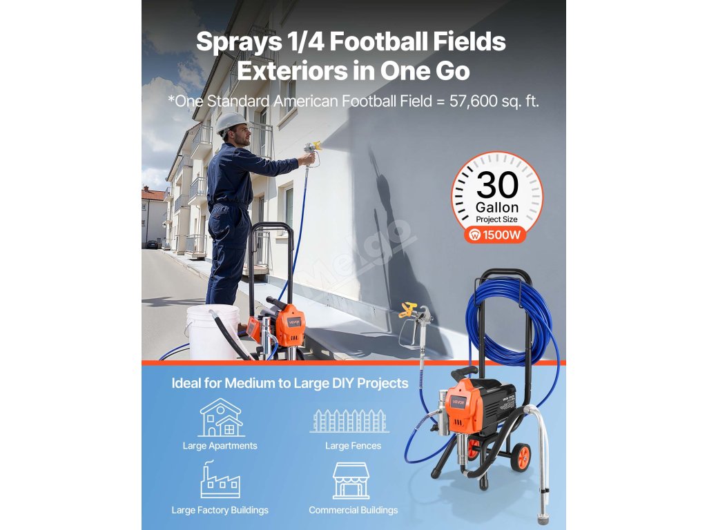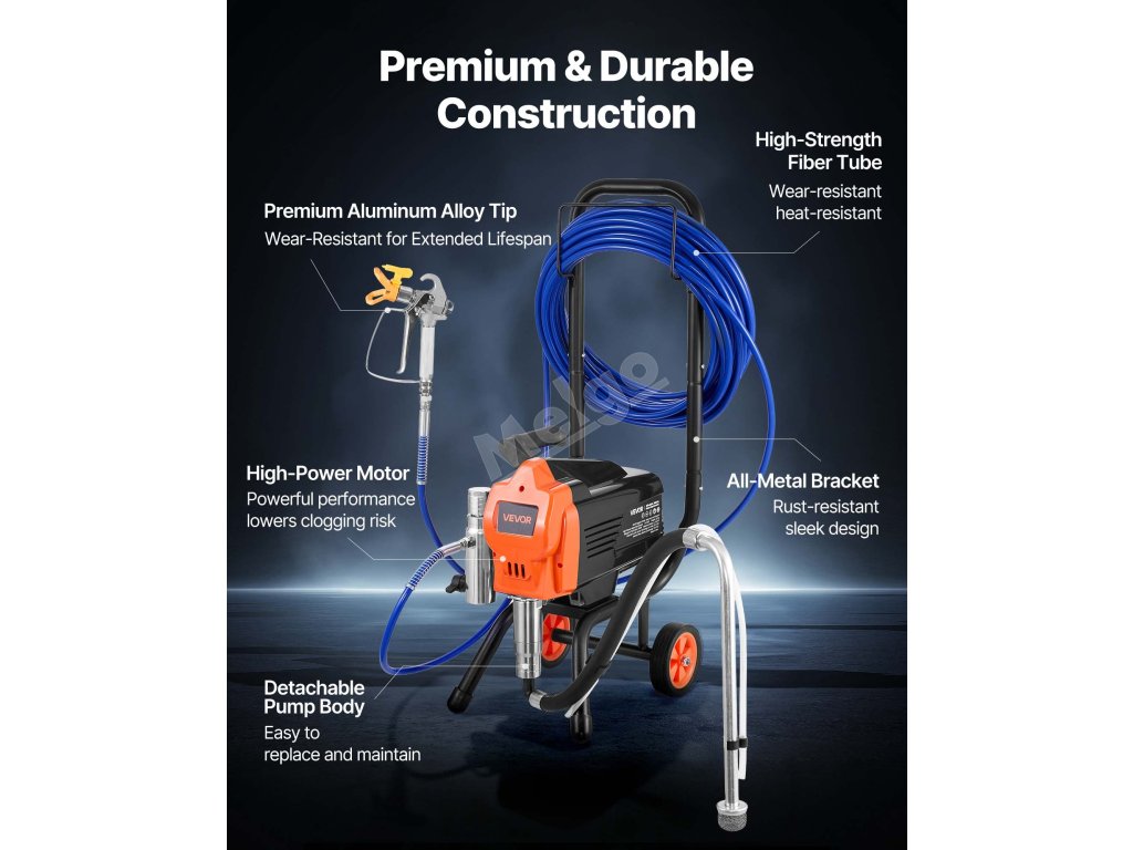 Bezvzduchový stříkací stroj 1500W, 3300PSI, s vozíkem a hadicí
