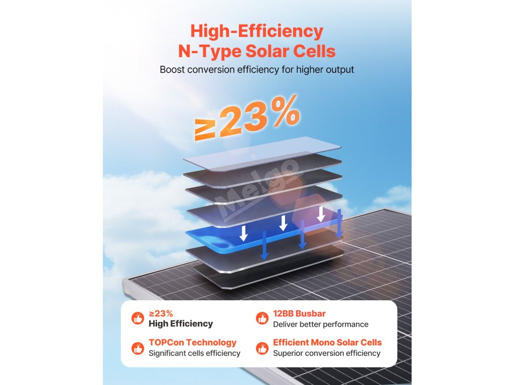 Užívejte si spolehlivou energii podle potřeby s naším vysoce účinným monokrystalickým solárním panelem typu N. S účinností přeměny ≥23 % poskytuje stabilní a konzistentní výstup energie, aby vaše zařízení byla neustále napájena.