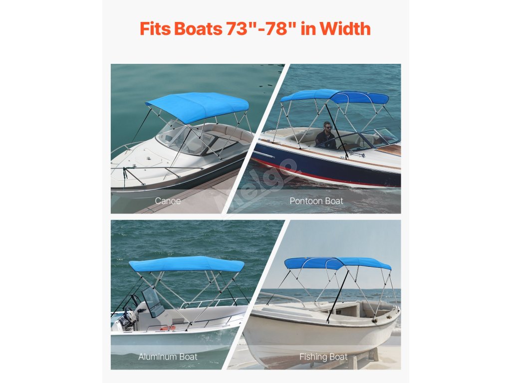 Díky 1" silným nosným tyčím z hliníkové slitiny a odolné základně z PP je tato střecha bimini bezpečně připevněna k vaší lodi. Materiály odolné proti korozi zajišťují, že nebude rezavět v důsledku působení mořské vody nebo deště.