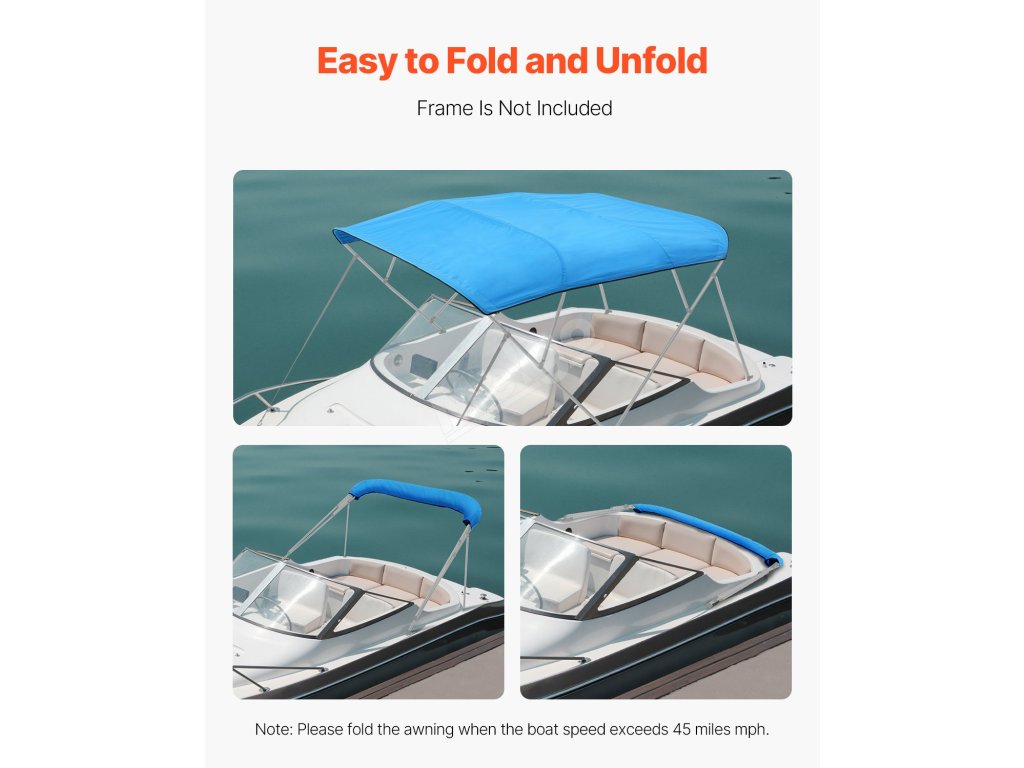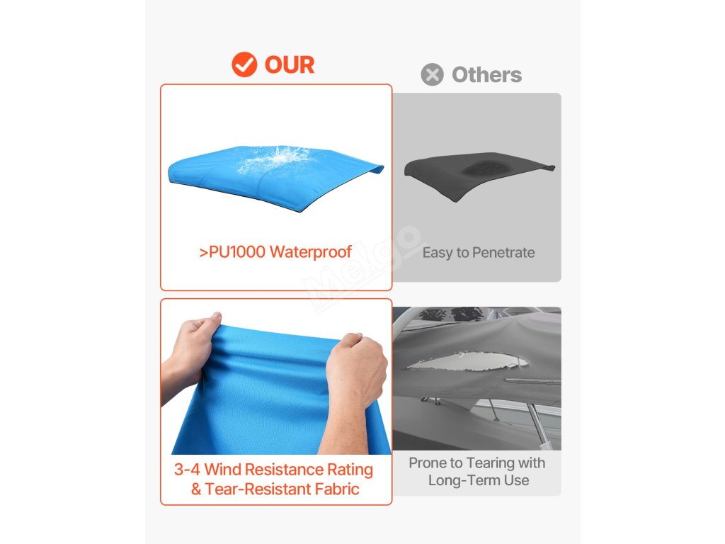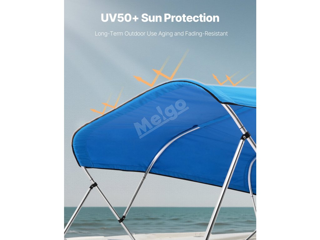 Tato markýza na loď je vyrobena ze silné polyesterové tkaniny 600D s vysokou hustotou, která odolává blednutí i po vystavení slunci a dešti. Nabízí ochranu před sluncem a poskytuje chladný a zastíněný prostor pro venkovní použití.