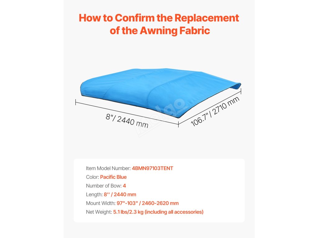 Bimini plachta 4 oblouky 600D nepromokavá 96"×97"-103" bez rámu