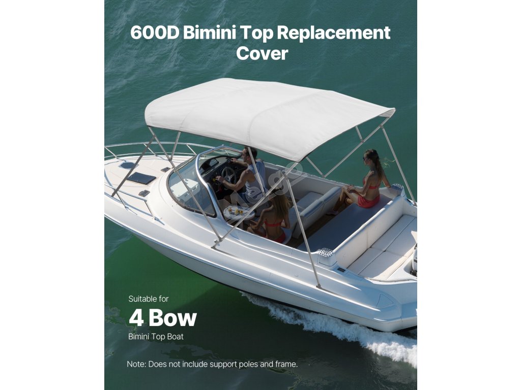 Bimini stříška na loď 600D, 4 oblouky, vodotěsná 96"L×(97"-103")W