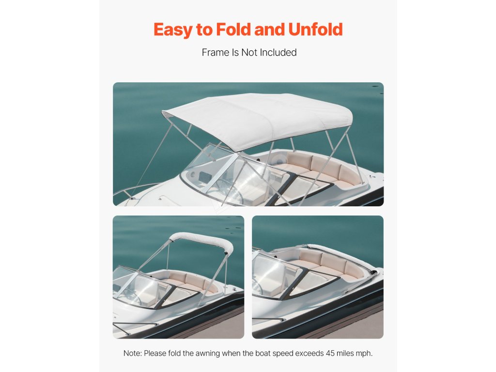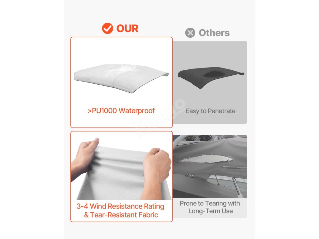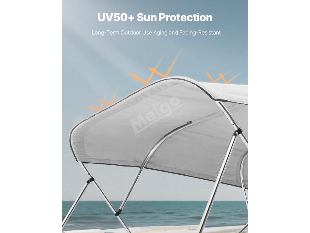 Tato markýza na loď je vyrobena ze silné polyesterové tkaniny 600D s vysokou hustotou, která odolává blednutí i po vystavení slunci a dešti. Nabízí ochranu před sluncem a poskytuje chladný a zastíněný prostor pro venkovní použití.