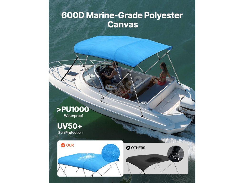 Tato markýza na loď je vyrobena ze silné polyesterové tkaniny 600D s vysokou hustotou, je odolná proti vyblednutí a nabízí ochranu proti slunečnímu záření. Zůstaňte v chladu a chráněni před sluncem a deštěm po celý den.