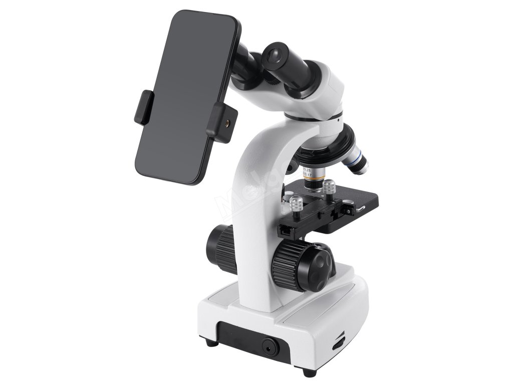 Binokulární mikroskop 40-2000X, hliníkové tělo, led, držák telefonu