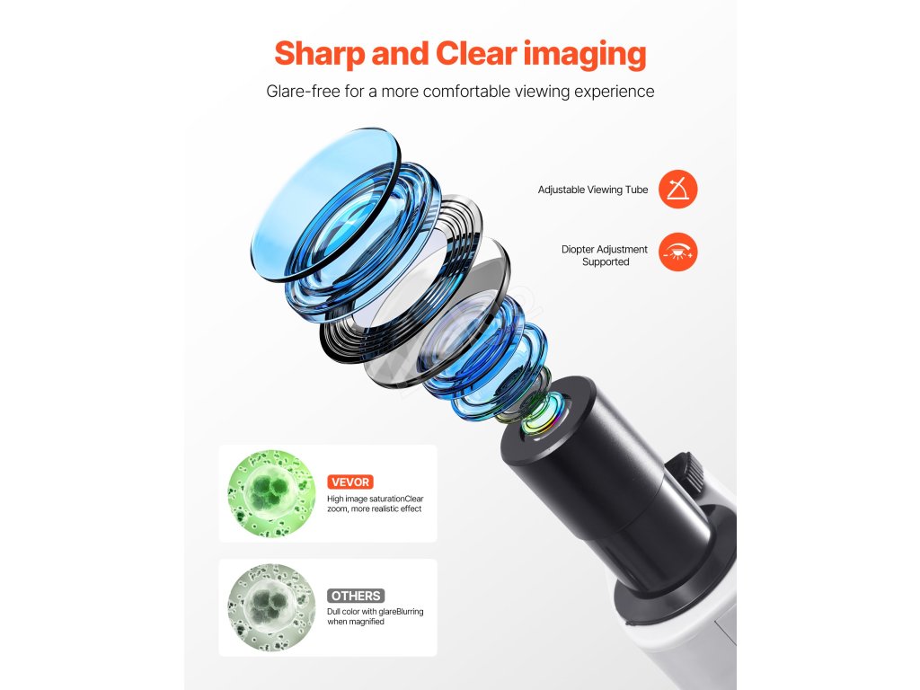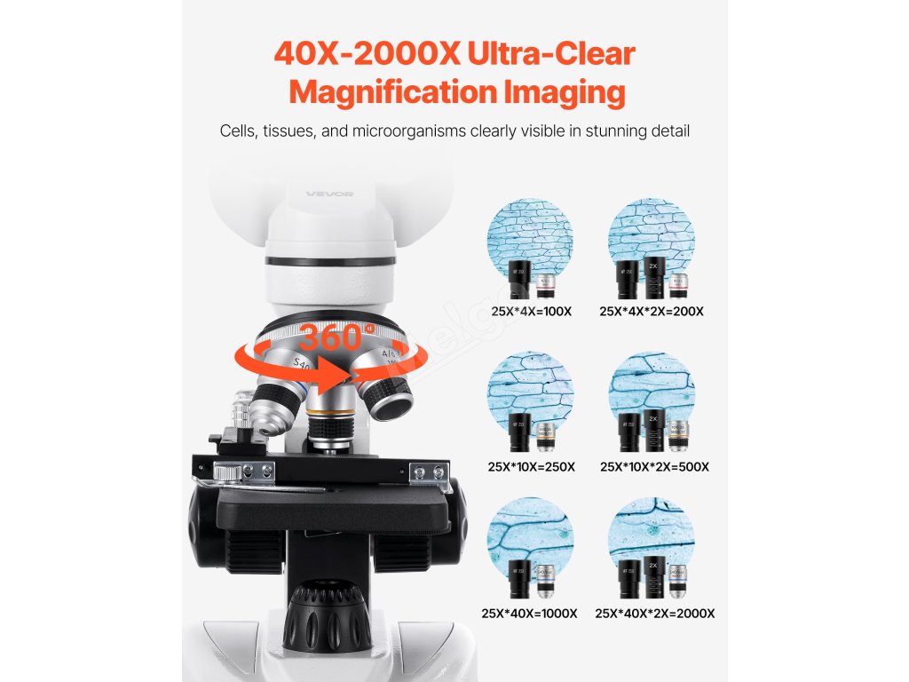 Tento mikroskop s rozsahem zvětšení od 40x do 2000x využívá pokročilou zobrazovací technologii, která zajišťuje, že každý stupeň zvětšení poskytuje jasné a detailní snímky, které vám umožní prozkoumat mikroskopický svět zblízka.