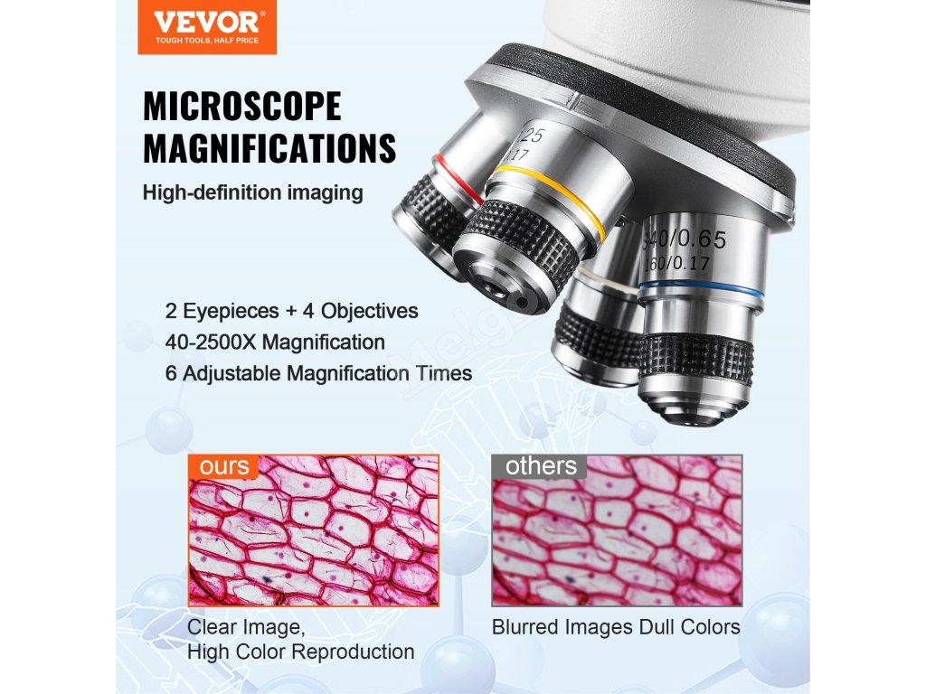 Každý stupeň zvětšení od 40násobného do 2500násobného zvětšení a pokročilá zobrazovací technologie poskytují jasné a složité detaily obrazu, které vám umožní prozkoumat mikroskopický svět s jedinečným realismem.