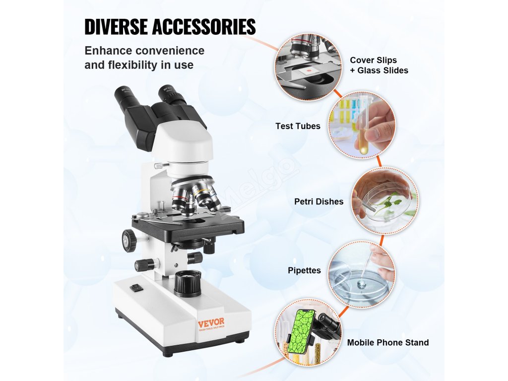 Součástí balení jsou krycí sklíčka, sklíčka, zkumavky, misky na kultivaci a různé potřebné příslušenství. Ať už se zabýváte biologickým výzkumem, lékařskou diagnostikou nebo vědou o životním prostředí, náš biologický mikroskop vám usnadní celou řadu experimentů a výzkumných úkolů.