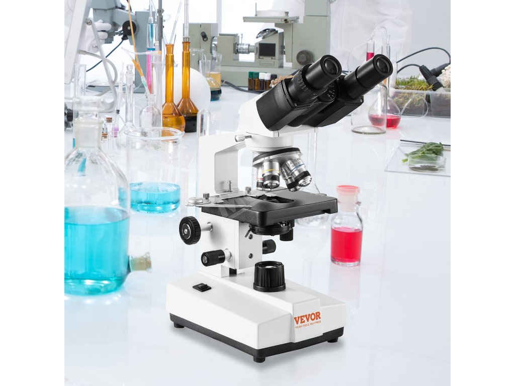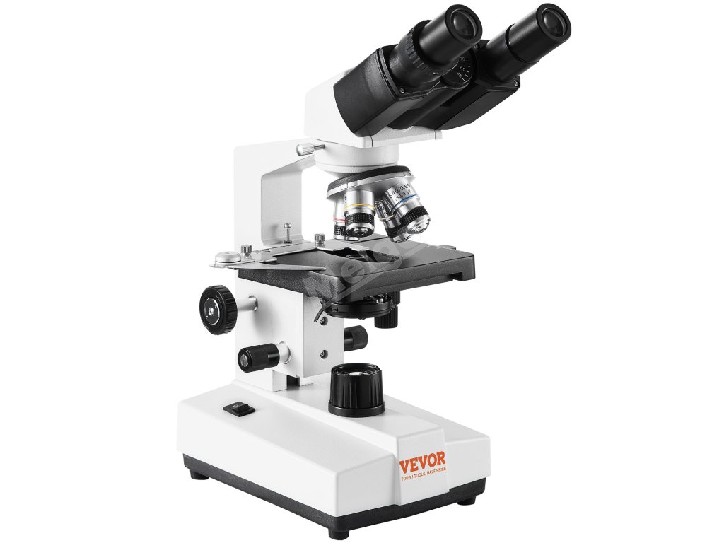 Binokulární složený mikroskop 40–2500×, led, dvouvrstvý stolek