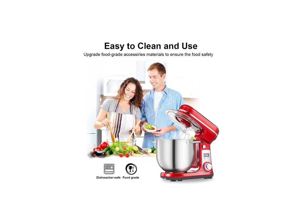 Je vybaven digitálním displejem, který zobrazuje dobu provozu a umožňuje provádět jiné činnosti ve stejnou dobu, kdy je mixér v provozu. Tento multifunkční mixér na pečení má také ochranu proti přehřátí a automaticky vypne přístroj, když se motor přehřeje. Konstrukce s výklopnou hlavou umožňuje nejen pohodlné přepínání příslušenství, ale také snadné vyjmutí mísy.