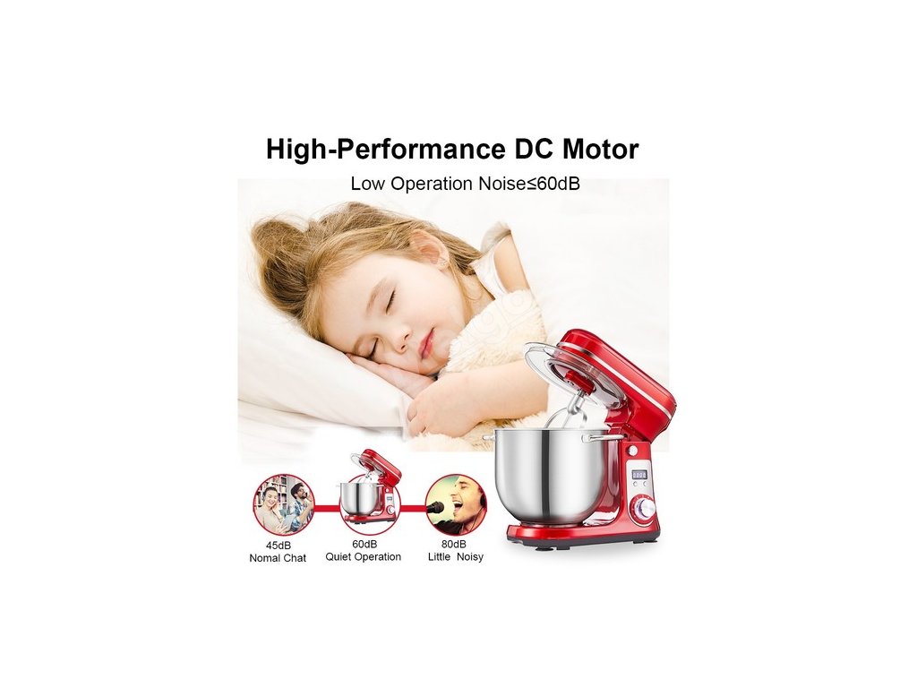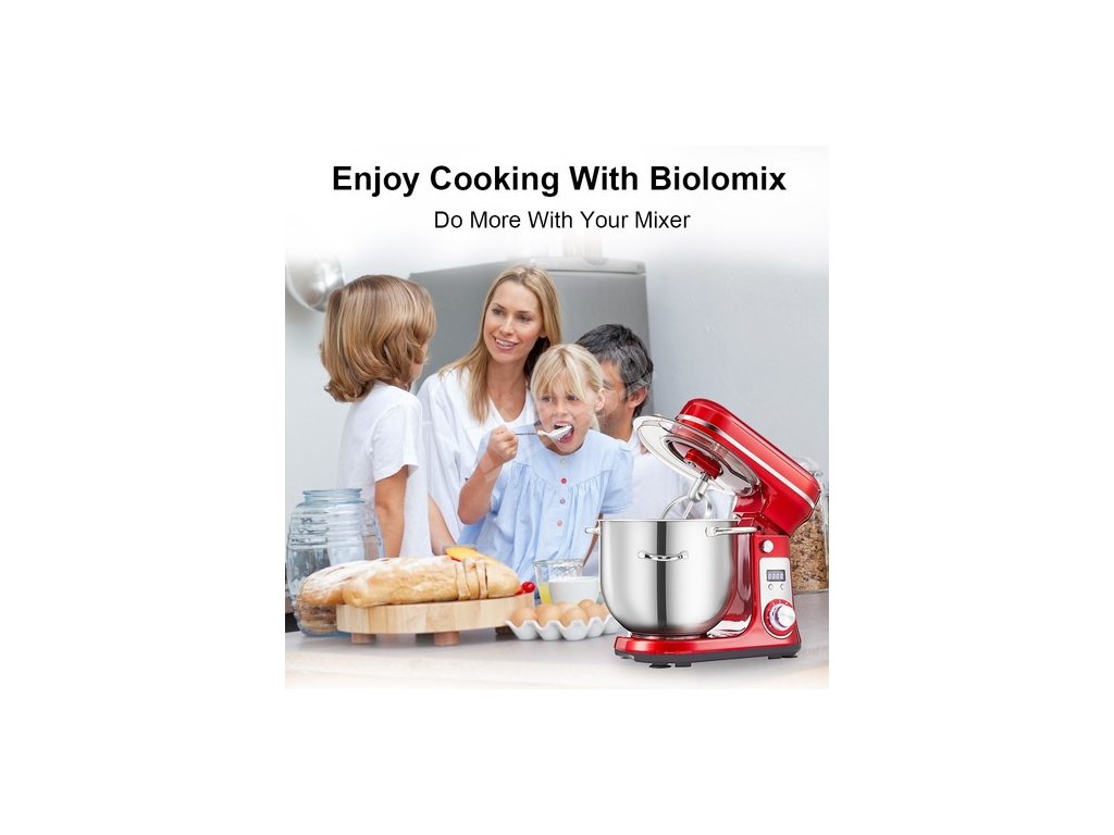 Stojanový mixér BioloMix 6 l využívá špičkový tichý stejnosměrný motor z čisté mědi s maximálním příkonem 1200 W a vysokou provozní účinností, který je vybaven hallovými senzory a přídavnými pulzními nastaveními. Díky 6 optimalizovaným rychlostem s funkcí časovače můžete snadno hníst těsta, hustá těsta, pusinky a šlehačku.