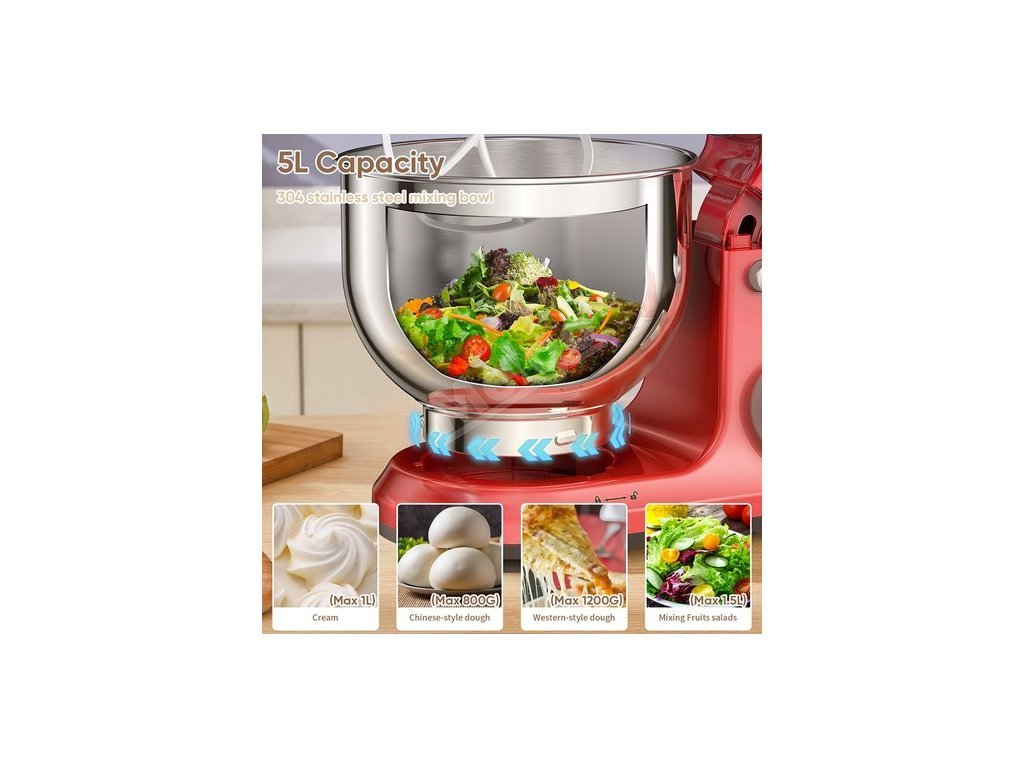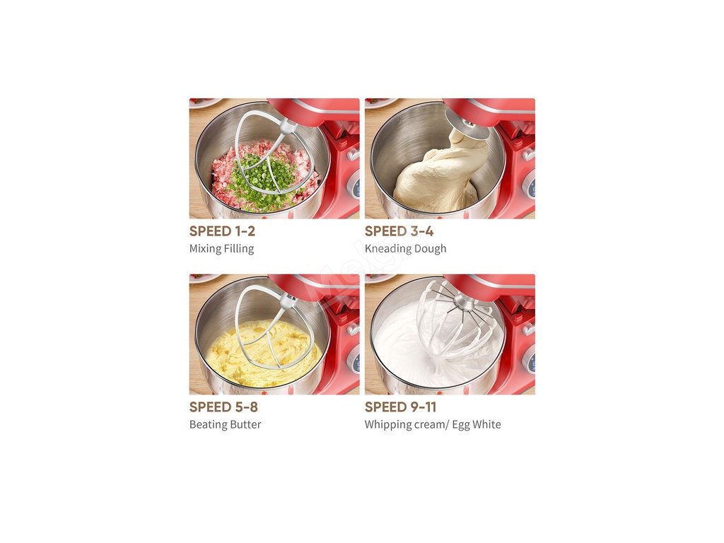 Jmenovité napětí: 220-240V/50-60Hz Rychlost: 11 rychlostí Funkce: hnětení/šlehání/míchání Objem mísy: 5 litrů |