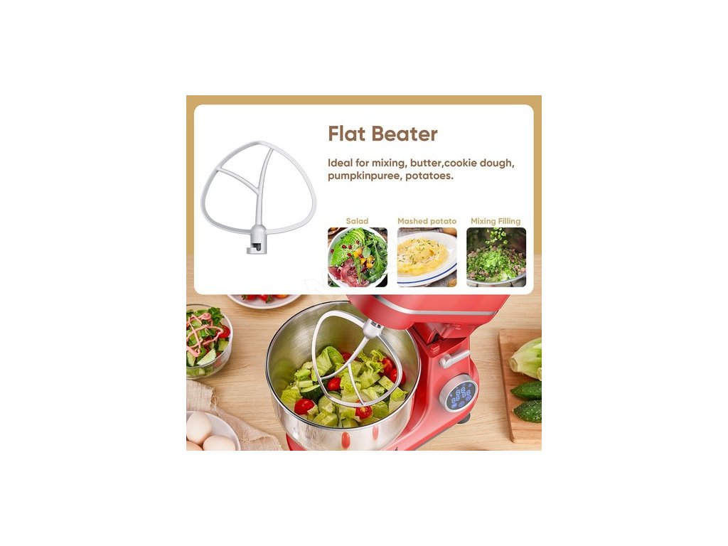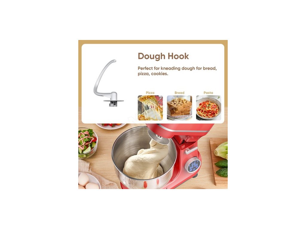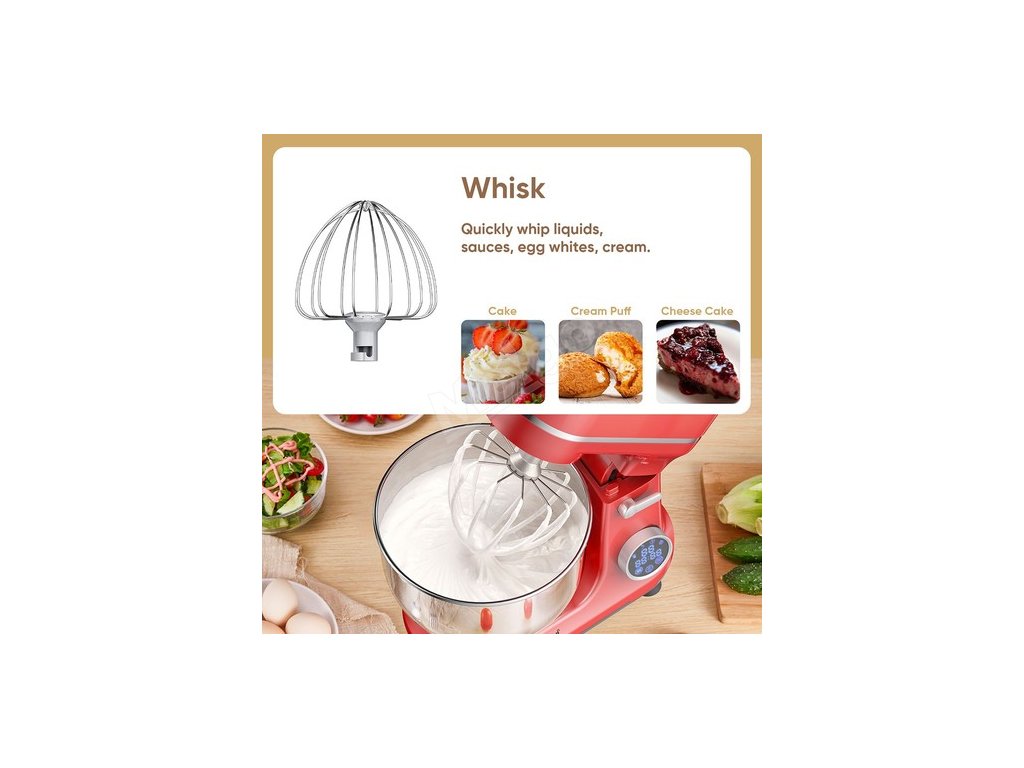| Obsah balení: | Návod k použití, Metla, Hák na těsto, Míchací mísa, Je tam pláč, Plochá šlehací metla, Hlavní těleso |