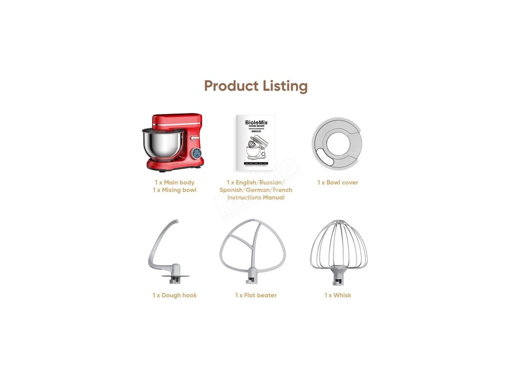 | Obecné | Štítek: BioloMix Typ:Bolo BioloMix: Stojanový mixér Model: BM602E Barva: červená |