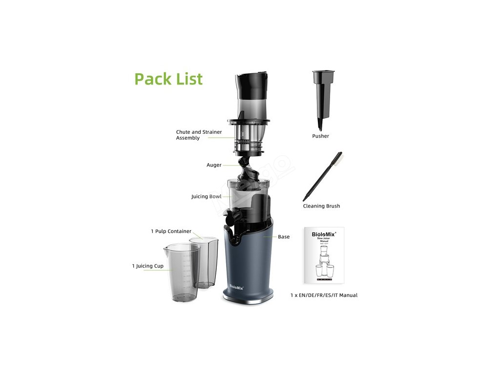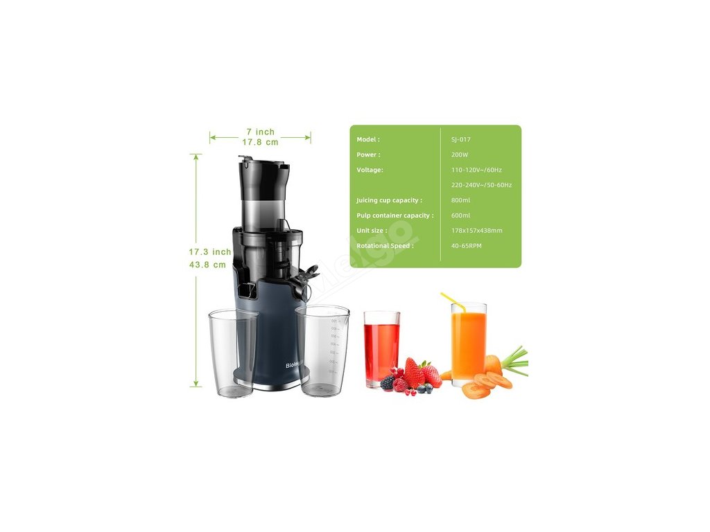 | Obecné | Silný: BioloMix Typ: odšťavňovač Model: pomalý odšťavňovač Model: SJ-017 Barva: modrá |