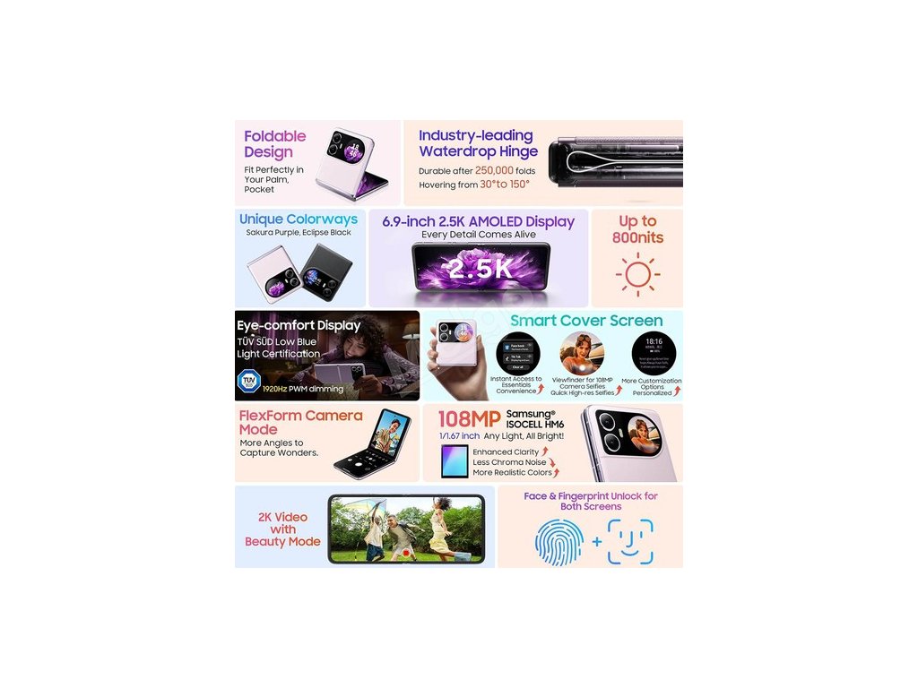 Specifikace | 6,9palcový displej AMOLED, rozlišení 2560*1080; poměr obrazovky k tělu 94,3 %,1,19palcový krycí displej OLED, rozlišení 390*390|