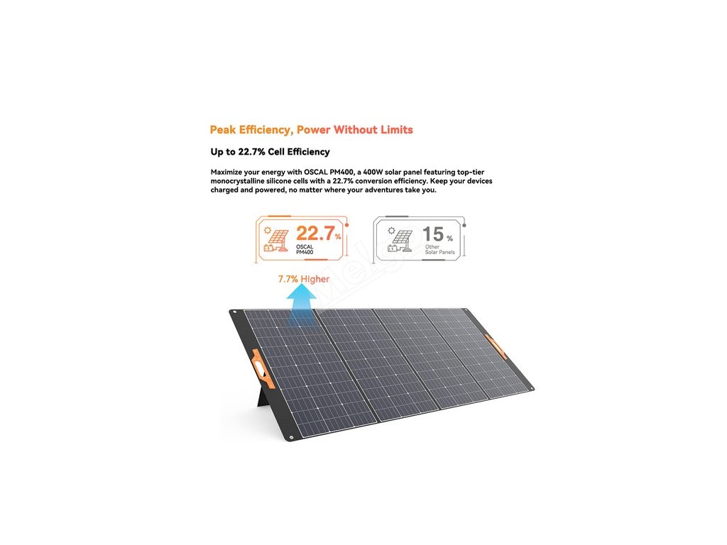 Maximalizujte svou energii pomocí 400W solárního panelu OSCAL PM400, který je vybaven špičkovými monokrystalickými křemíkovými články s účinností přeměny 22,7 %. Udržujte svá zařízení nabitá a napájená bez ohledu na to, kam vás vaše dobrodružství zavedou.