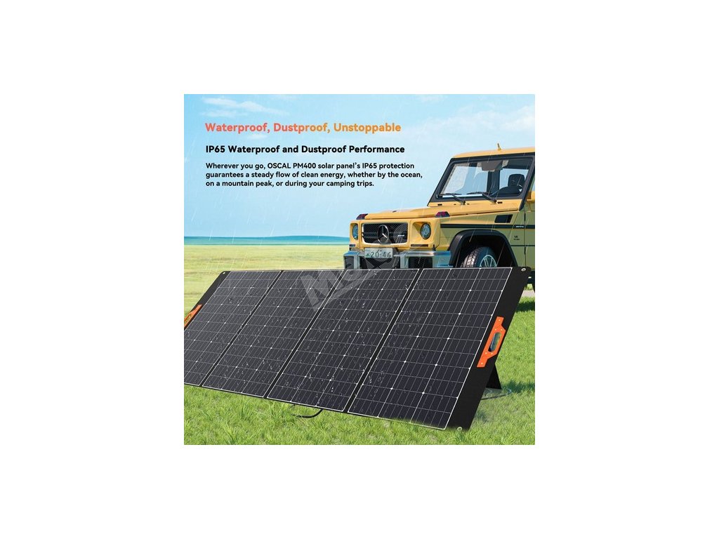 Ať už se vydáte kamkoli, solární panel OSCAL PM400 s krytím IP65 vám zajistí stálý přísun čisté energie, ať už u oceánu, na vrcholu hory nebo během kempování.