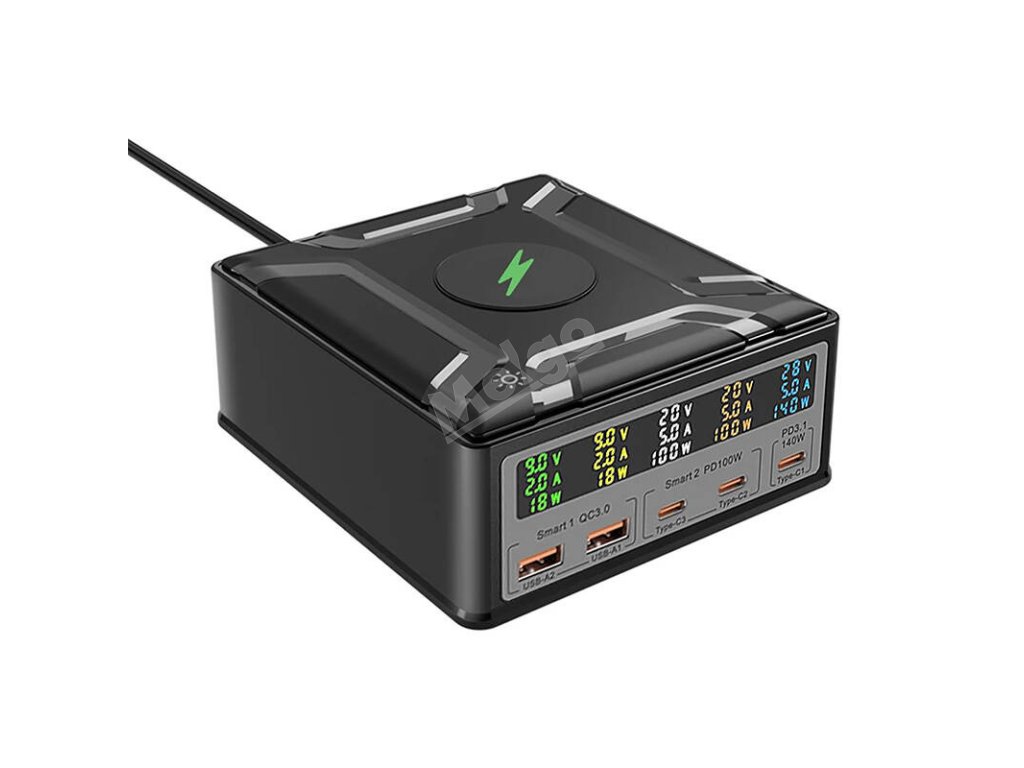 | Výstup | USB-C1: PD3.1 5 V/3 A, 9 V/3 A, 12 V/3 A, 15 V/3 A, 20 V/5 A, 28 V/5 A / PPS: 3,3-21 V/5 A, 140 W (max.); USB-C2 / USB-C3: PD3.0 5 V/3 A, 9 V/3 A, 12 V/3 A, 15 V/3 A, 20 V/5 A / PPS: 3,3-21 V/5 A, 100 W (max.); USB-C2 / USB-C3: PD3.0 5 V/3 A, 9 V/3 A, 12 V/3 A, 15 V/3 A, 20 V/5 A / PPS: 3,3-21 V/5 A, 100 W (max.).); USB-C2 + USB-C3: 45 W + 45 W; USB-A1 / USB-A2: QC3.0 5 V / 3 A, 9 V / 2 A, 12 V / 1,5 A, 4,5 V / 5 A, 5 V / 4,5 A 22,5 W (max.); USB-A1 + USB-A2: 12 W + 12 W; Bezdrátové nabíjení: 15 WATT / 10 WATT / 7,5 WATT / 5 WATT; |