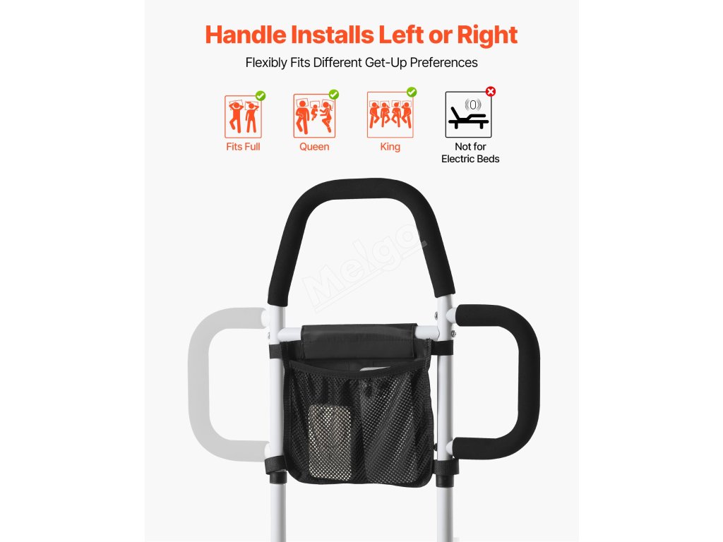 Boční madlo lze podle přání uživatele instalovat vlevo nebo vpravo, čímž se přizpůsobí různým uspořádáním lůžka a osobním zvyklostem.