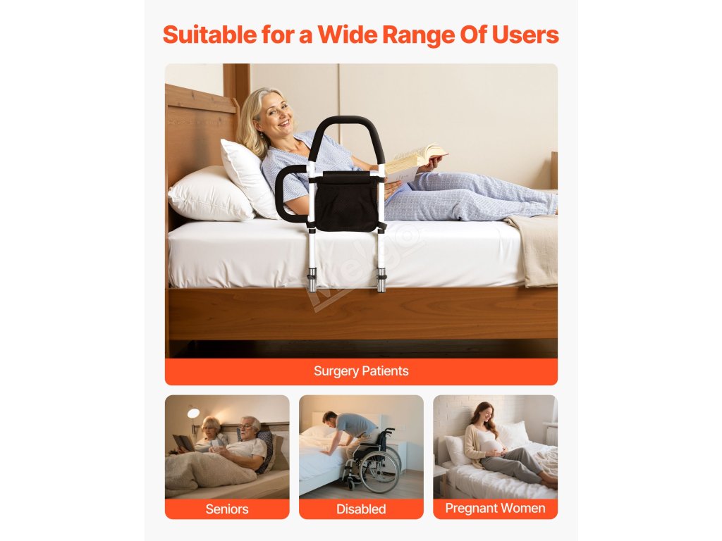 Pomocná kolejnice k lůžku se snadno nastavuje - není zapotřebí žádné složité nářadí ani odborné znalosti, což uživatelům umožňuje rychlou a bezproblémovou instalaci.