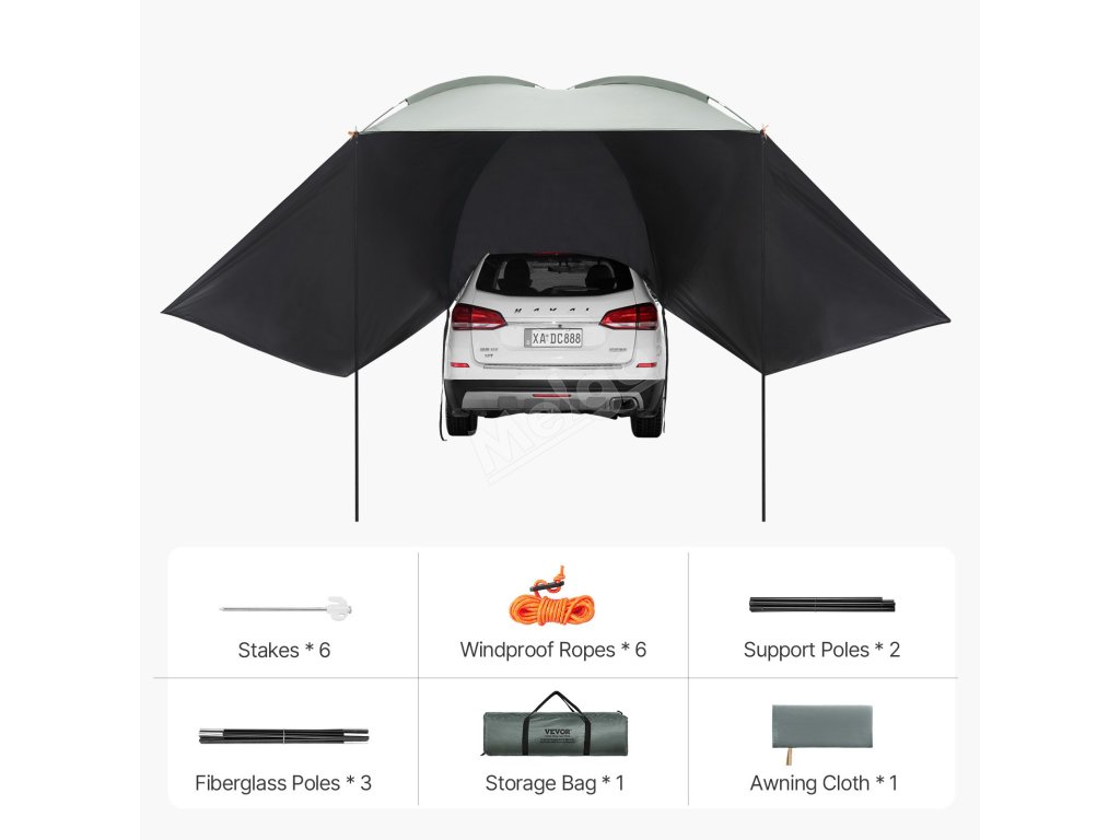 Naše přenosná markýza na vozidlo poskytuje prostorný přístřešek o rozměrech 10x7 stop s ochranou proti UV záření, větru, vodě a tepelné izolaci. Dodává se s přenosnou taškou pro prostorově úsporné umístění na střechu vozu. Hodí se na boční i zadní část vozidla a poskytuje přístřešek pro pikniky a kempování za každého počasí.
