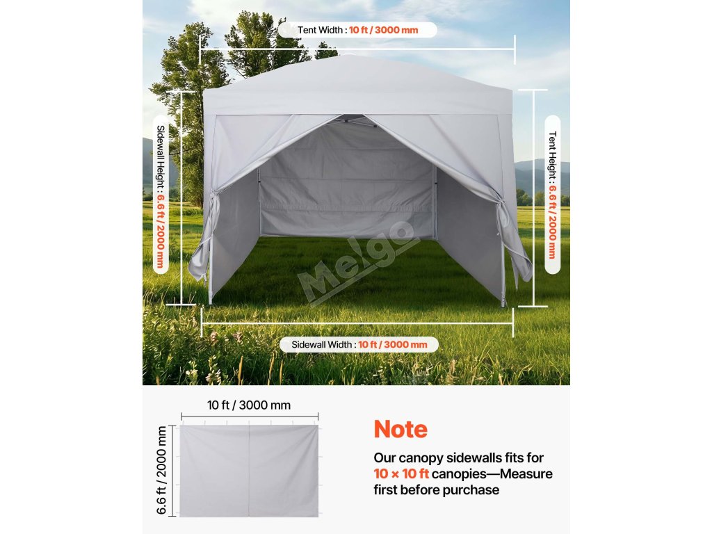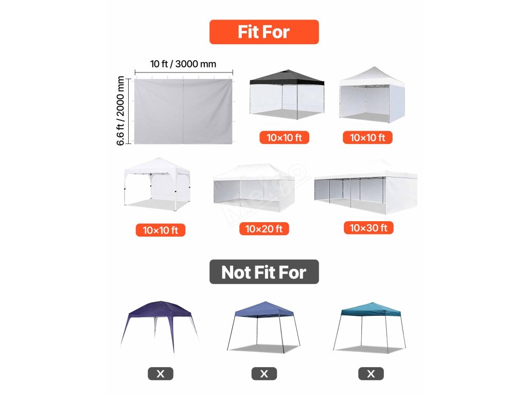 Naše boční stěny přístřešku jsou navrženy tak, aby se vešly do většiny přístřešků 10 x 10 stop s rovnými nohami. Před nákupem si prosím změřte rám svého přístřešku.