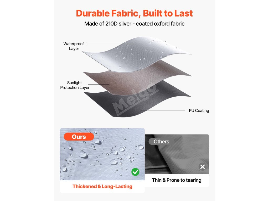 Naše boční stěny přístřešku jsou vyrobeny z postříbřené tkaniny Oxford 210D a chrání před prudkým sluncem a mírným deštěm. Poskytují vynikající stín a odolnost proti vodě, takže tyto boční stěny jsou ideální pro dlouhodobé venkovní použití.