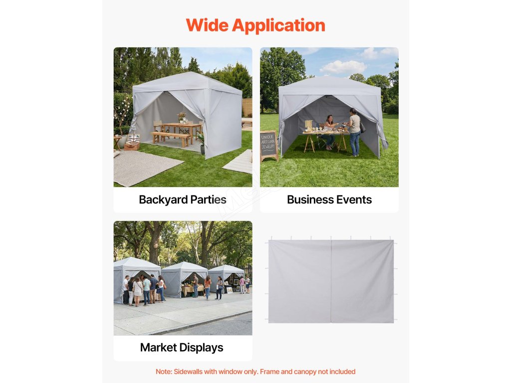 Naše boční stěny jsou vhodné pro pikniky, kempování, trhy, veletrhy a další komerční využití, kde poskytují lepší stín, soukromí a ochranu v jakémkoli prostředí.