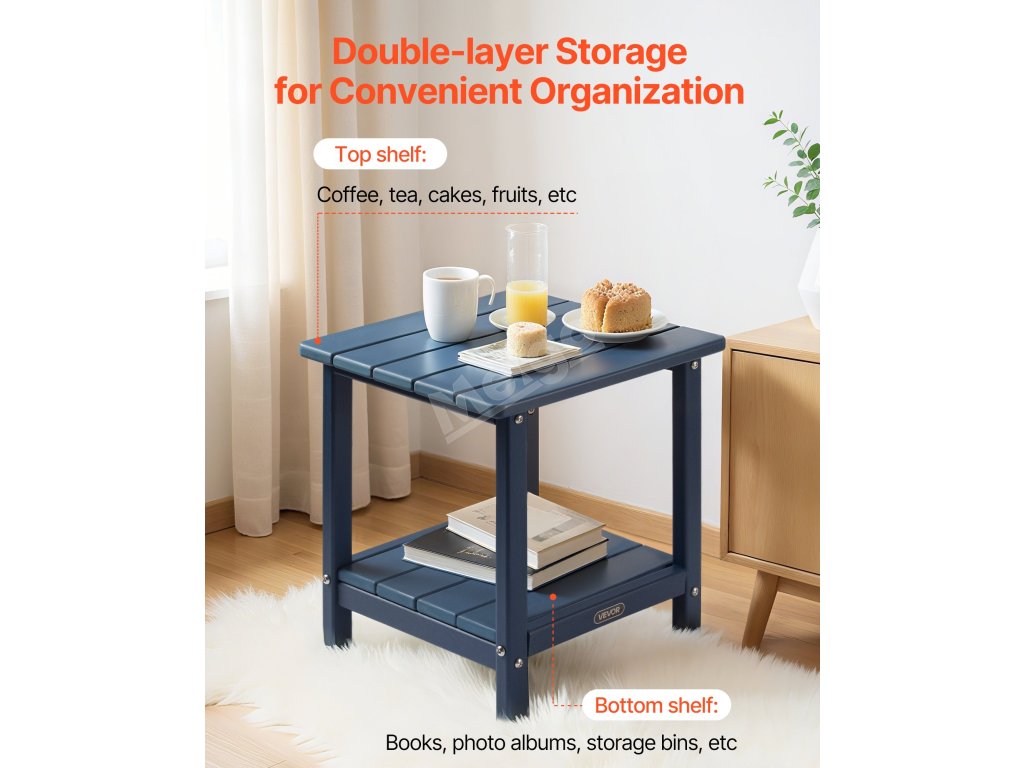 Tento praktický stůl na terasu je vyroben tak, aby odolal přírodním vlivům. Je vodotěsný, odolný proti vlhkosti a stálobarevný. Dvouvrstvá konstrukce nabízí dostatek úložného prostoru, který udrží váš prostor čistý a uklizený.