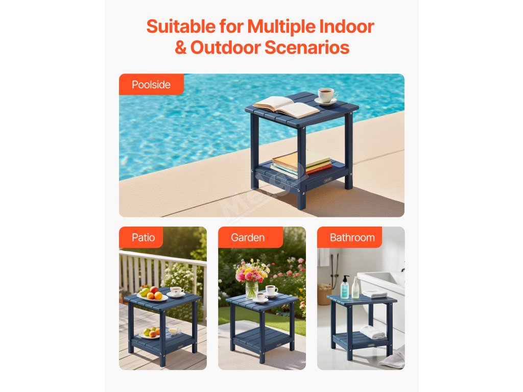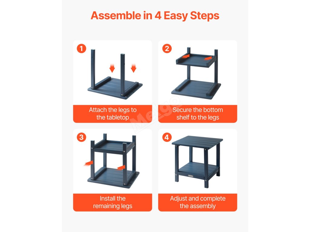 Tento venkovní odkládací stolek je vyroben z vysoce kvalitního materiálu HDPE a má pevnou konstrukci H-rámu, takže nabízí vynikající pevnost. Horní deska unese až 360 kg a spodní police až 160 kg.