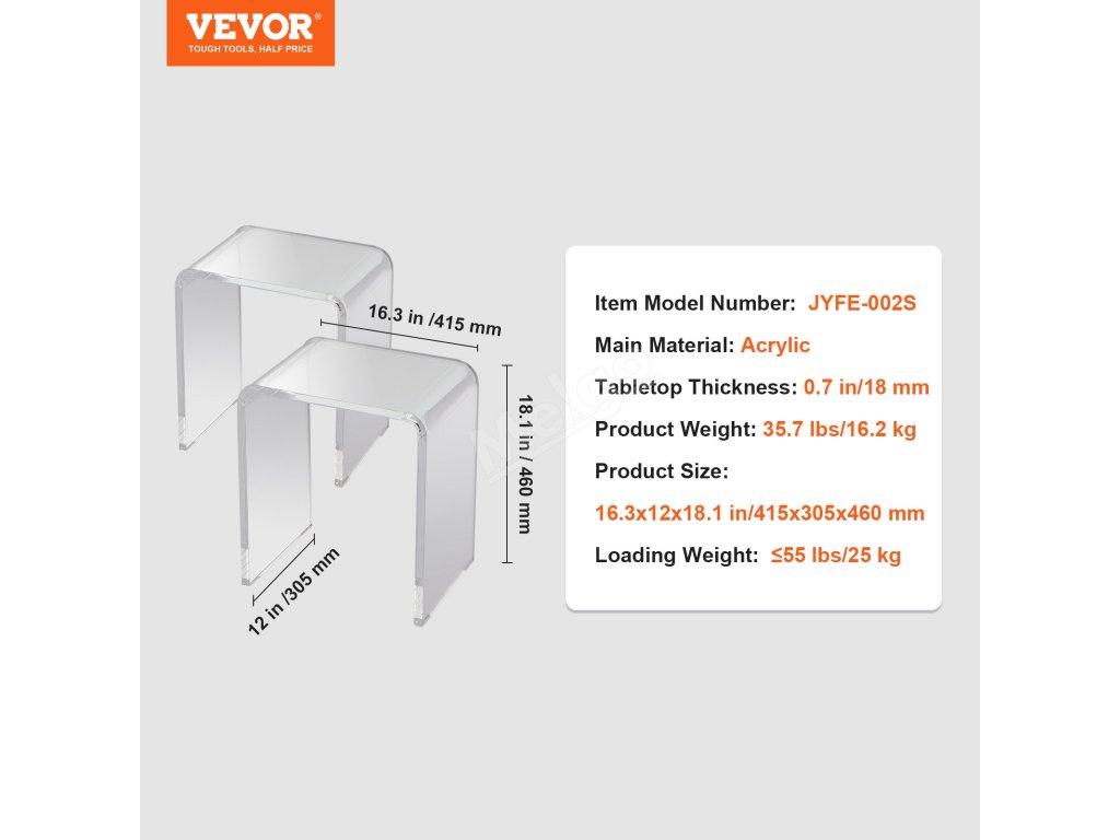 Díky výšce 18,1 palce/460 mm se náš akrylový stolek perfektně hodí k většině pohovek. Zajistěte si pohodlný přístup k věcem, které máte po ruce!