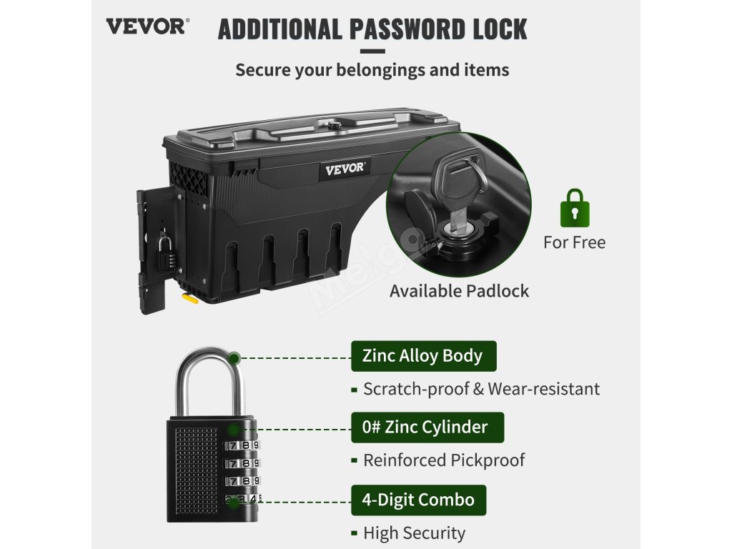 Víko se zabudovaným zámkem a klíčem chrání obsah před krádeží. Pro menší předměty je k dispozici organizační přihrádka. Využijte jeho velkou kapacitu a připravte se na to, že budete mít věci uspořádané a snadno dostupné.