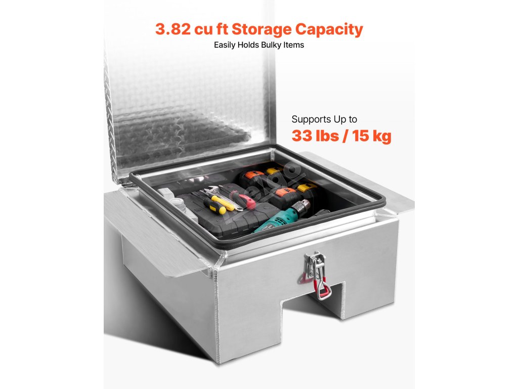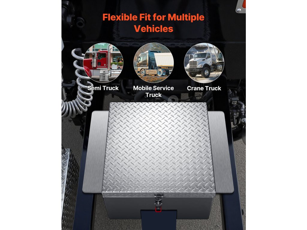 Tento box na nářadí pro nákladní vozidla má celohliníkový rám s velkým úložným prostorem a schodišťovou plošinou s nosností až 220 lbs/100 kg. Je namontován na boku nákladního automobilu a umožňuje rychlý a snadný přístup k nářadí a předmětům, aniž by bylo nutné vstupovat do kabiny.