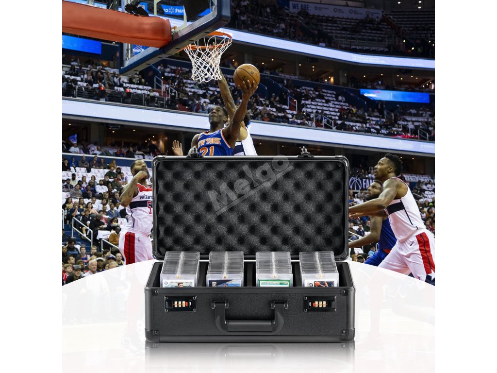 Představujeme vám naše pouzdro na karty s rozšířeným 3,5palcovým/90mm slotem na karty a 20 pružnými pěnovými vložkami, které pojme až 120 karet s hodnocením PSA a je kompatibilní s PSA, BGS, SGC a TOP LOADERS. Díky kombinačnímu zámku a rukojeti ochráníte své karty a můžete si je bez obav vzít kamkoli s sebou!