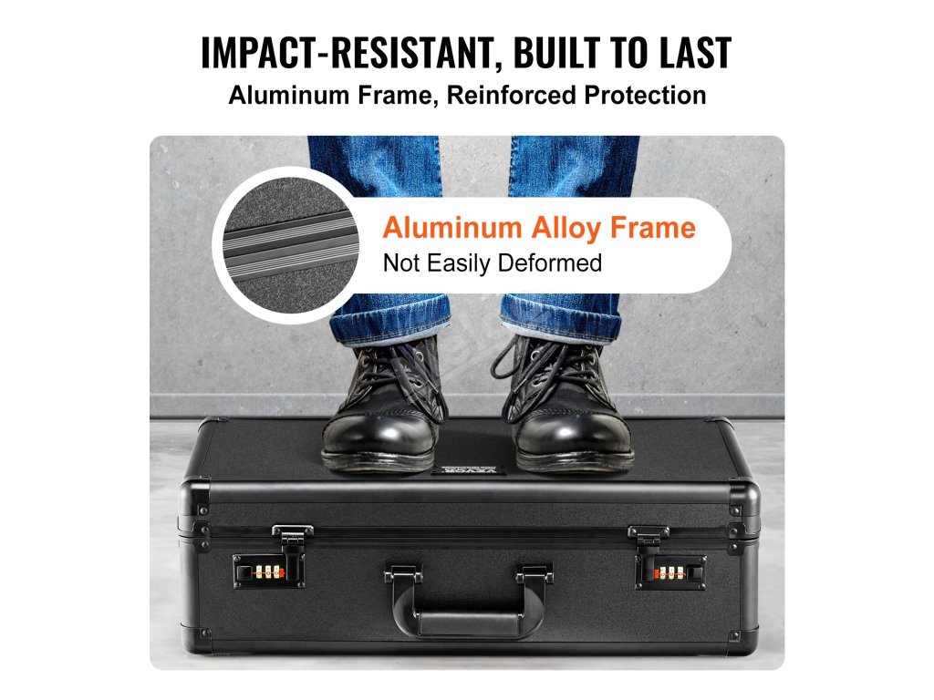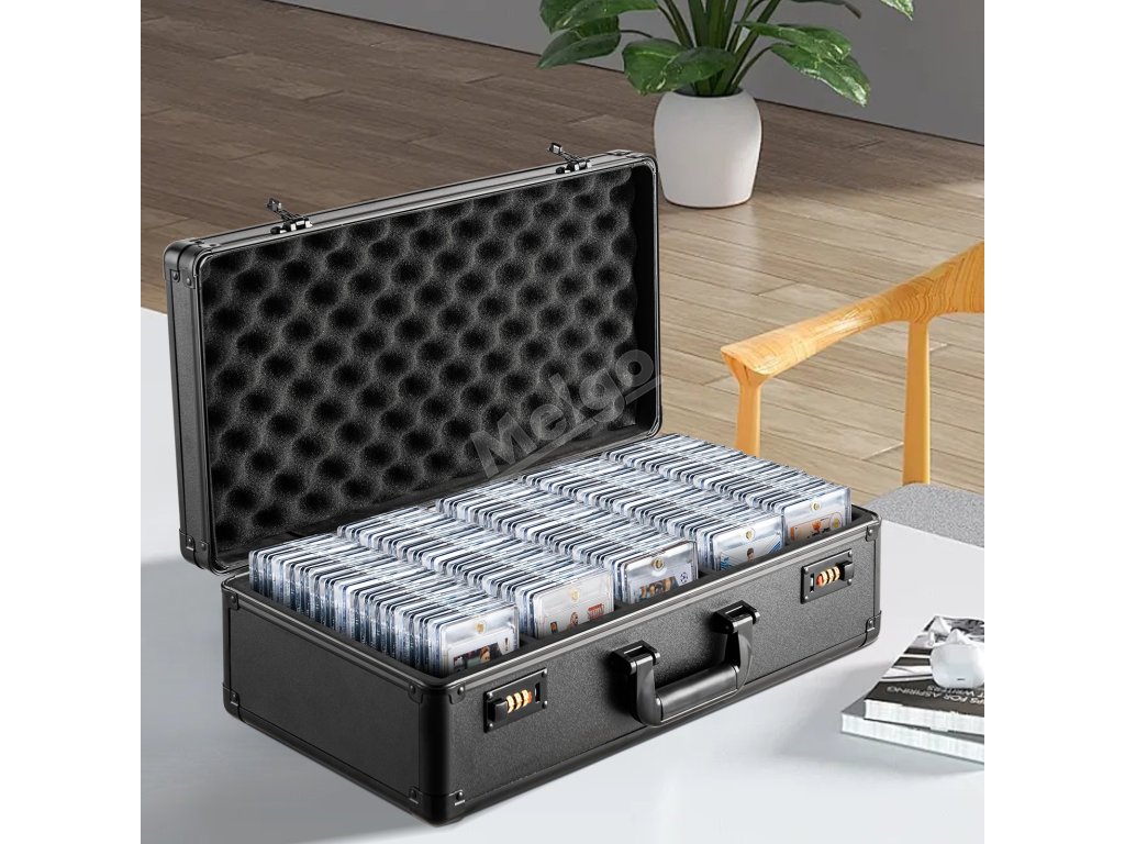 Naše tříděné pouzdro na karty je vyrobeno z odolného rámu z hliníkové slitiny a zesílených kovových rohů, což zajišťuje odolnost proti pádu a nárazu a prodlužuje jeho životnost. Gumové nožičky na spodní straně zajišťují tlumení nárazů a odpružení a nabízejí zvýšenou ochranu vaší cenné sbírky.
