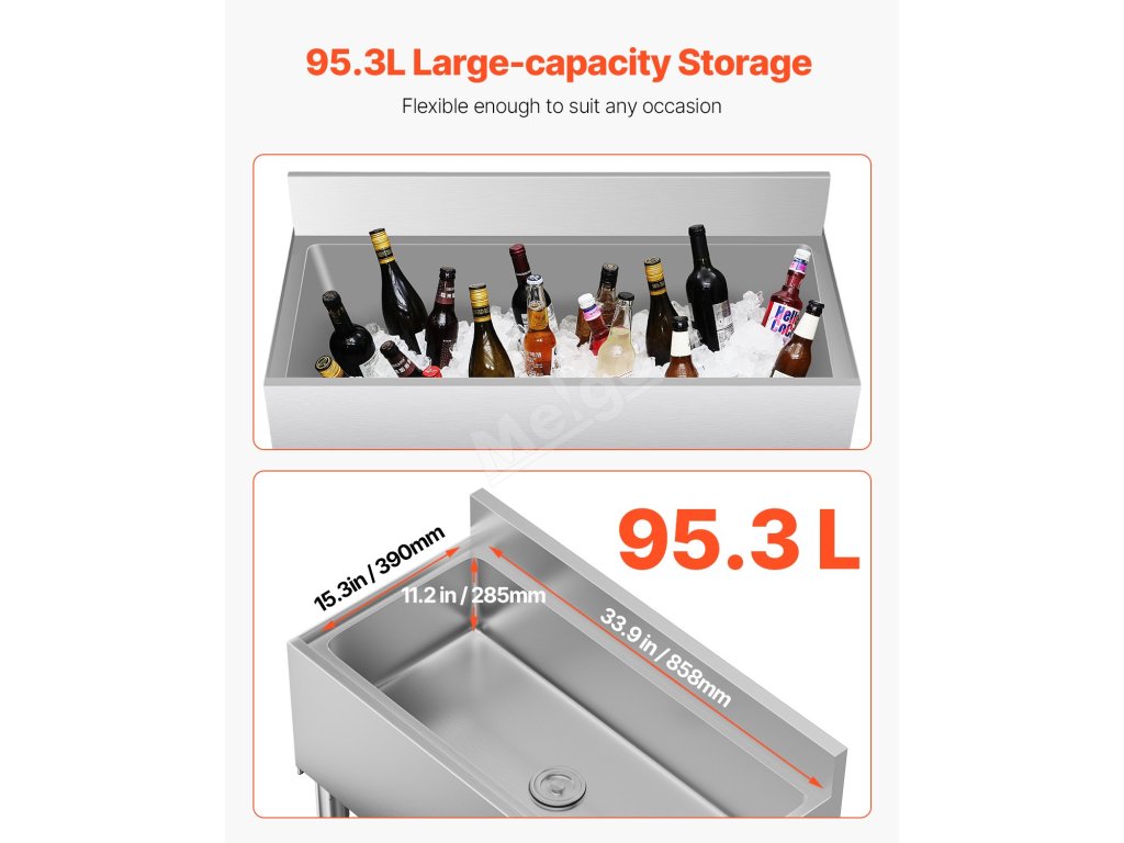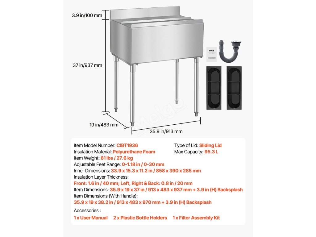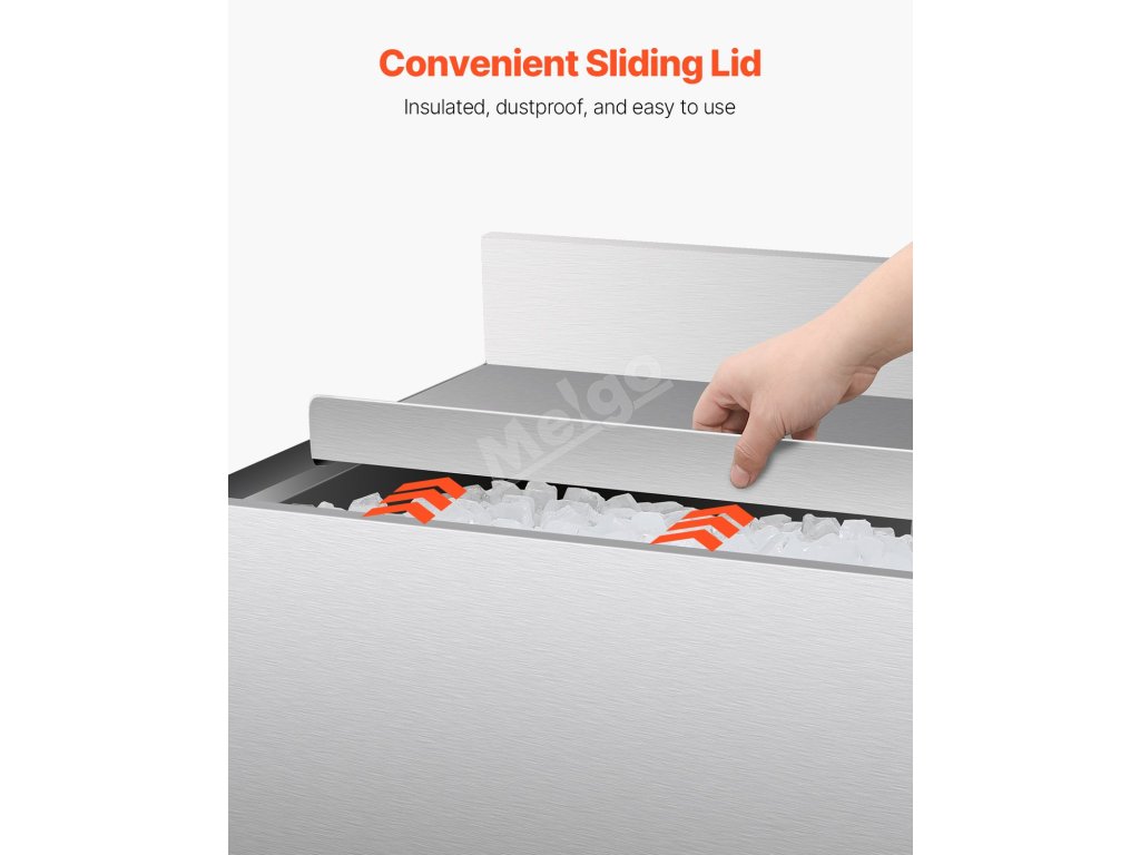 Náš komerční zásobník na led s velkým objemem 95,3 l kombinuje vynikající izolaci s pohodlnou funkčností. Je vyrobena z potravinářské nerezové oceli 304 a zaručeně udrží led zmrazený až 24 hodin. Je vybavena nastavitelnými nožičkami, které se přizpůsobí různým povrchům, takže je ideální pro všestranné použití.