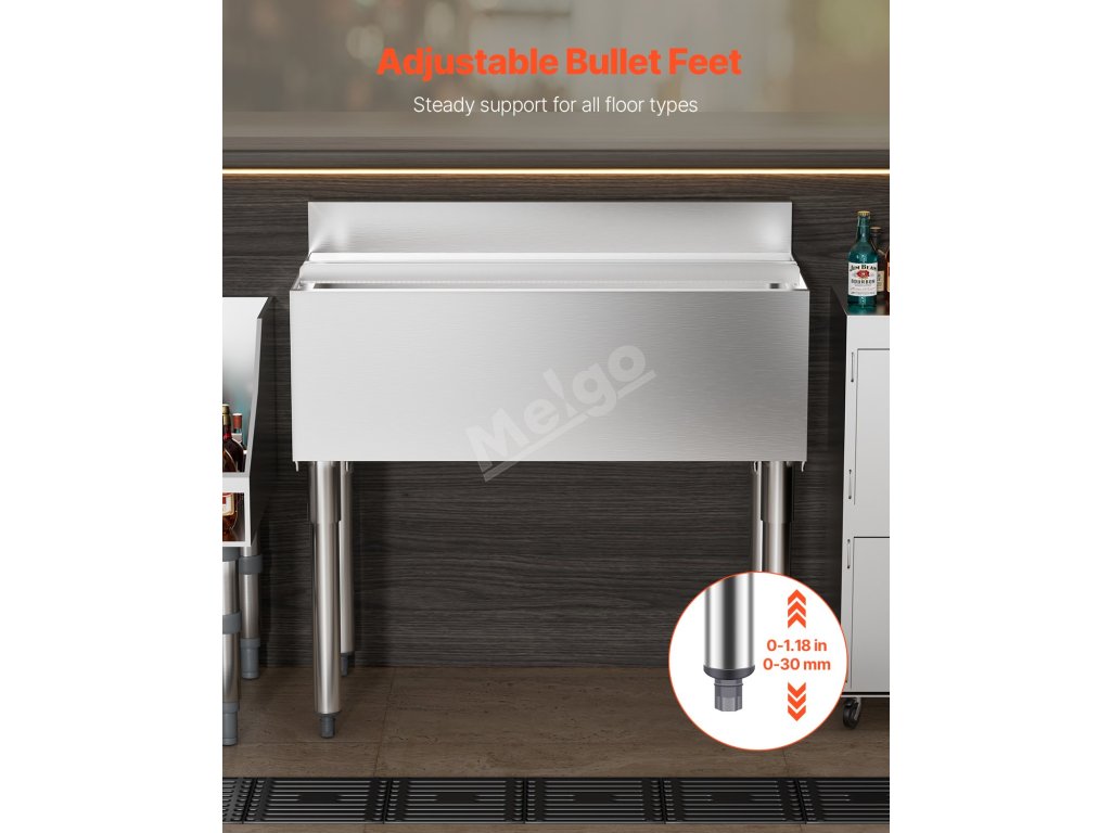 Náš zásobník na led pod barem je vyroben z potravinářské nerezové oceli 304. Jeho vnitřní vložka a víko jsou vyrobeny z potravinářské nerezové oceli 304, která zaručuje odolnost a bezpečnost. Pro váš klid má certifikát NSF.
