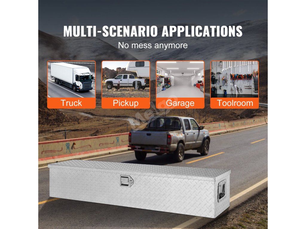 Náš těžký box na nářadí je všestranný a lze jej použít na závěsných nosičích, nosičích nákladu, obytných automobilech, postelích nákladních automobilů, přívěsech, plošinách, ale i v domácnostech, garážích a na stavbách. Je lehký a vyrobený z vysoce kvalitních materiálů a zároveň poskytuje dostatek úložného prostoru pro veškeré nářadí.