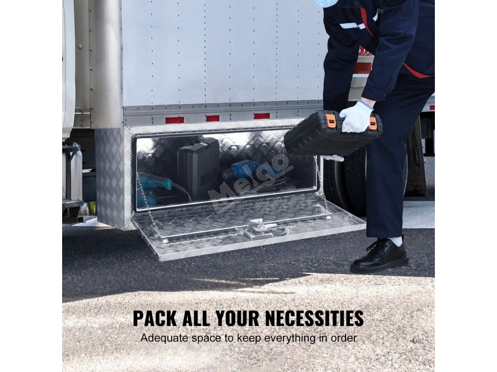 Tento box na podvozok nákladného vozidla je vodotesný, pretože udrží vaše náradie a vybavenie v suchu a chránené. Tesné tesnenia zabraňujú vniknutiu vody, a to aj pri silnom daždi. Táto funkcia je dôležitá pri skladovaní prívesov, aby vaše predmety zostali v bezpečí. Dodáva sa s bezpečnou západkou s T-rukoväťou, ktorá zvyšuje bezpečnosť boxu. Uchovajte svoje veci v bezpečí pred krádežou. Ľahko sa ovláda, ale je dostatočne pevná, aby zabránila neoprávnenému prístupu. Tento box ponúka pokoj v rôznych poveternostných podmienkach.