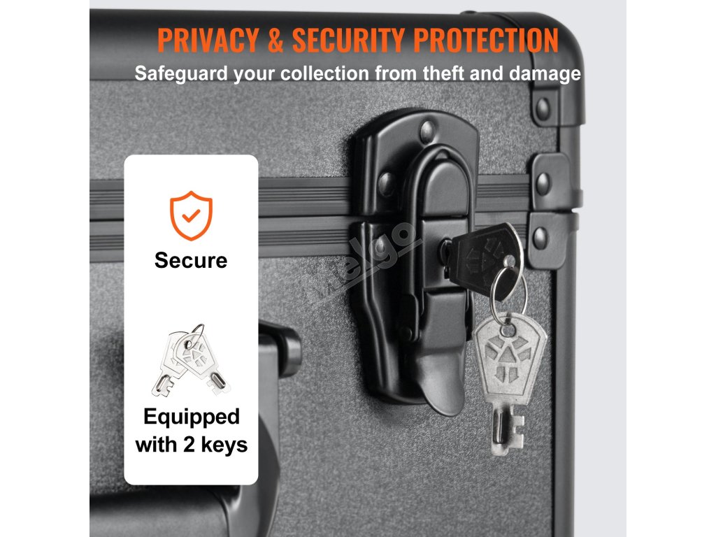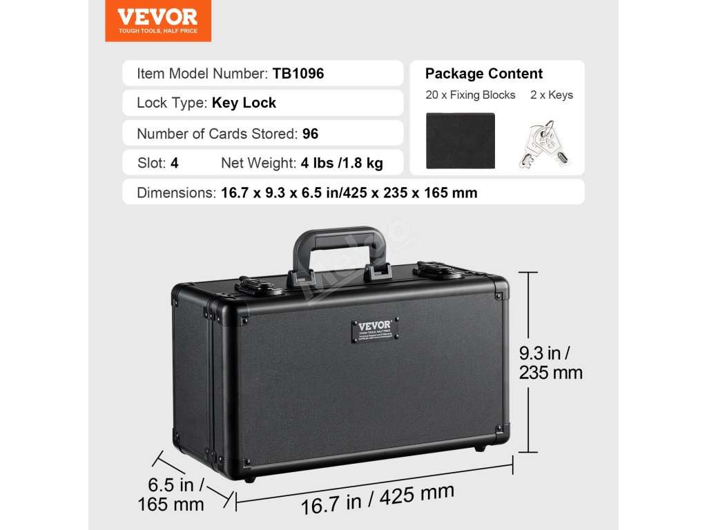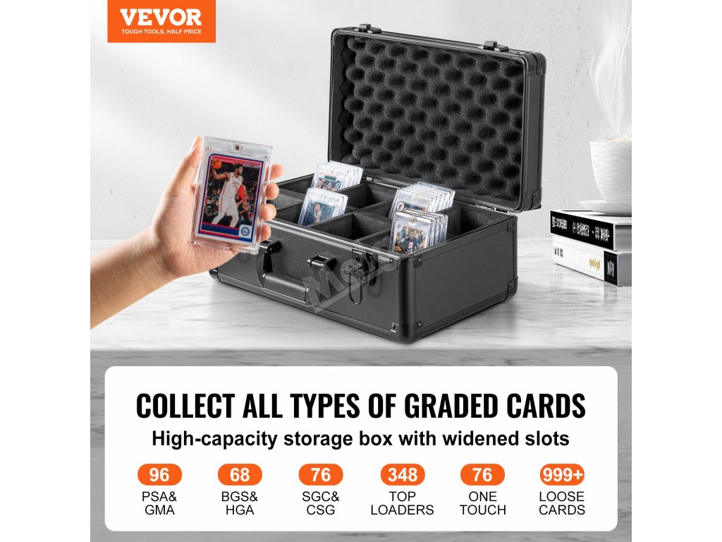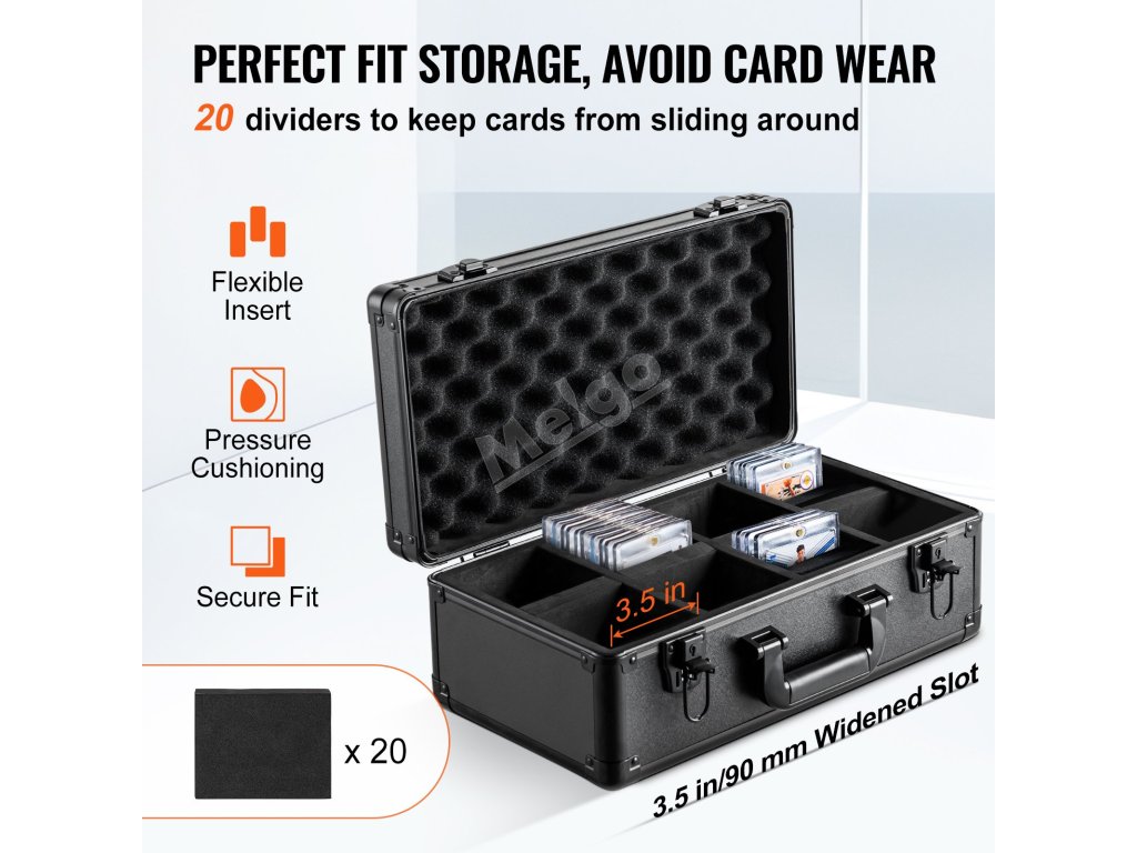 Představujeme vám naše pouzdro na karty s rozšířeným 3,5palcovým/90mm slotem na karty a 20 pružnými pěnovými vložkami, které pojme až 96 karet s hodnocením PSA a je kompatibilní s PSA, BGS, SGC a TOP LOADERS. Zamykací mechanismus doplněný 2 klíči ochrání vaše karty s klidem na duši!
