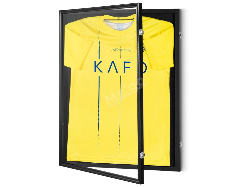 Naše vitrína na dresy je vyrobena z dřevěného rámu a vysoce průhledného PC panelu odolného proti UV záření a zajišťuje, že váš dres zůstane chráněn a zároveň si zachová své živé barvy a textury. Díky pantům a kolíčkům můžete své cenné dresy a památeční předměty vystavovat stylově a chráněně!